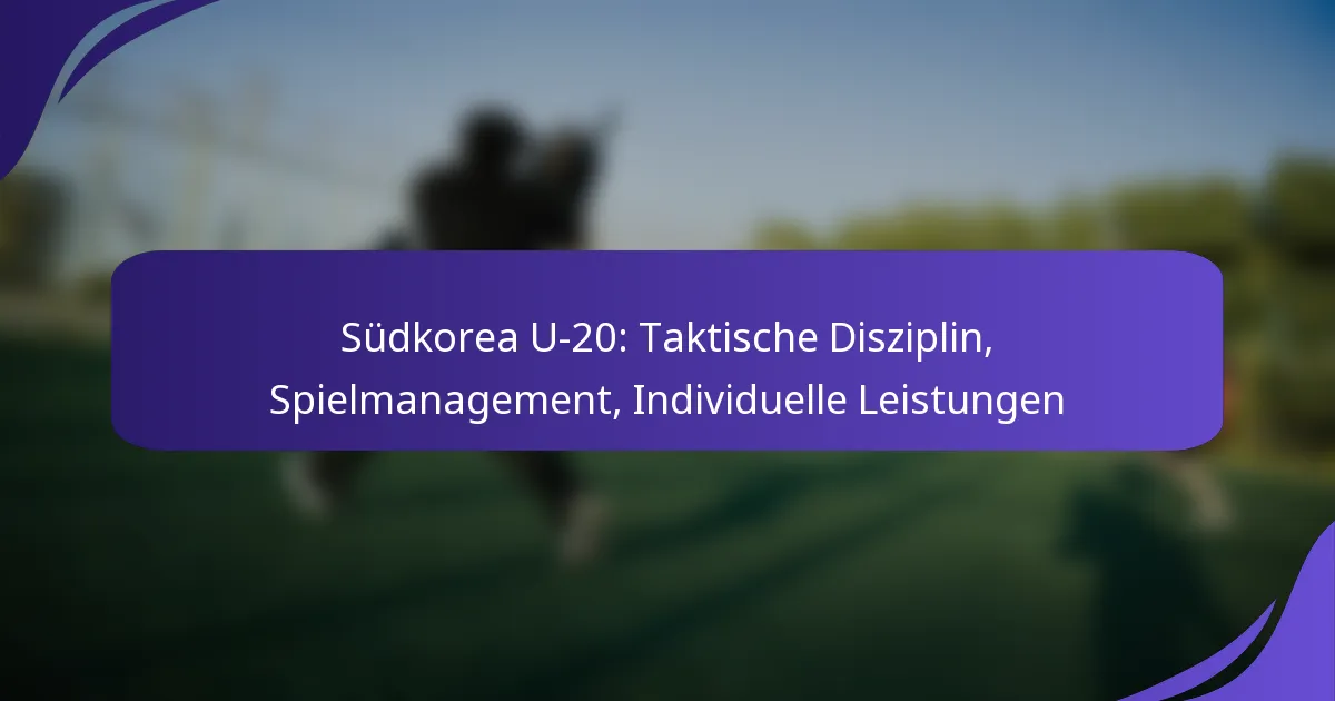 Die taktische Disziplin der U-20-Mannschaft Südkoreas ist durch strukturierte Formationen, klare Spielerrollen und effektives Spielmanagement gekennzeichnet. Diese Disziplin verbessert ihre Fähigkeit, Strategien auszuführen, die die Leistung und Anpassungsfähigkeit während der Spiele maximieren.